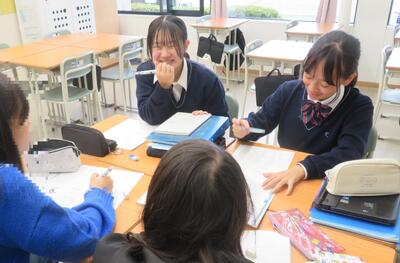 体験授業では、教職員も在校生も、「約半年後に一緒に学ぶ仲間になるのかな…」という思いを抱きながら小学校6年生をお迎えしました。仲間と真剣に課題解決に向けて、対話をしながら「学び合う」、本校のスタイルはいかがだったでしょうか。中には自ら手を挙げて自分の考えを述べる小学校6年生もいて大変立派でした。これから、入試に向けて、学習にも一層力が入るかと思いますが、小学校生活で仲間と豊かな人間関係を築くこと、協力してやりきるという経験も充実させてください。その力が本校の学校生活の土台となります。