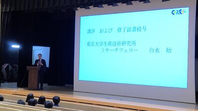 発表の後には、東京大学生産技術研究所 リサーチフェロー 白水始 様からご講評をいただき、「修了証書」を授与されました!5名の皆さん、1年間の研究、本当にお疲れ様でした!