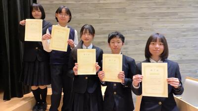 本校は、UTkyoGSC-Next の川口教室として、主に土曜日に1・2年生の希望者を対象に特別講座を開講していることは、本HPで随時お伝えしてきていましたが、実は、3年生の5名が今までの特別講座の発展として自由研究を進めていました。東京大学や技術士会等の方々の指導助言を受けたり、企業の実験施設や地元の栽培施設を借りたりしながら、自身の興味関心から設定した研究テーマについて、1年間、研究を進めてきました。(とても贅沢なサポートのもとでの研究です)学校の教科課題等もある中での研究は大変だったと思いますが、本当によく研究をしたと思います。本日は、その研究成果を発表が行われました。日立教室の生徒さんも来校したり、オンラインで参加したりしました。 また、関心の高い本校の1年生も参加し、興味深く先輩の研究成果を聞きました。(日立教室の生徒さんで同じ1年生が、がん予防について発表していることに驚いていました)
