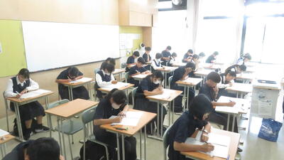 各学年生徒はこれまで勉強してきた内容を精一杯、答案用紙にぶつけていました。