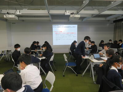 午後は、午前中に聞いた第3段階の研究発表者(3名)との交流会から始まりました。グループの司会は、本校川口教室の3名 でした。相手は高校生かつ初めましての方々ばかりでしたが、大変落ち着いた円滑な進行にとても感心しました。また、参考文献の探し方、検証の仕方の開発とその妥当性、学校生活と研究の両立、そもそもその研究を進める意義等、本校川口教室の8名は積極的に質問をしていました。