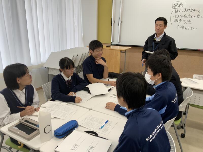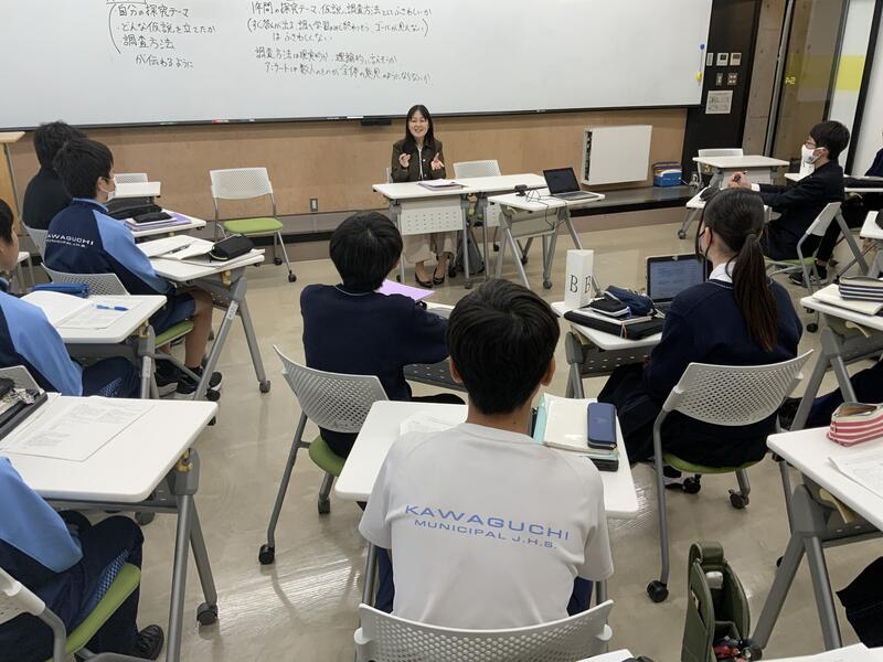 午後は、午前中に聞いた第3段階の研究発表者(3名)との交流会から始まりました。グループの司会は、本校川口教室の3名 でした。相手は高校生かつ初めましての方々ばかりでしたが、大変落ち着いた円滑な進行にとても感心しました。また、参考文献の探し方、検証の仕方の開発とその妥当性、学校生活と研究の両立、そもそもその研究を進める意義等、本校川口教室の8名は積極的に質問をしていました。