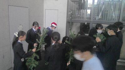 今日の放課後に、クリスマスツリーの飾りつけを行いました。