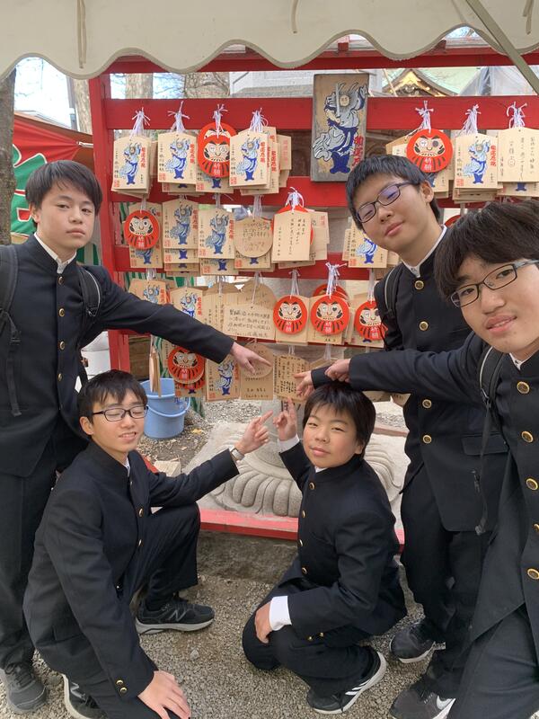 附属中伝統行事の強歩大会で鍛え上げられた足腰を使い、新年の願いをかけに同じ道を『走って』行きました。