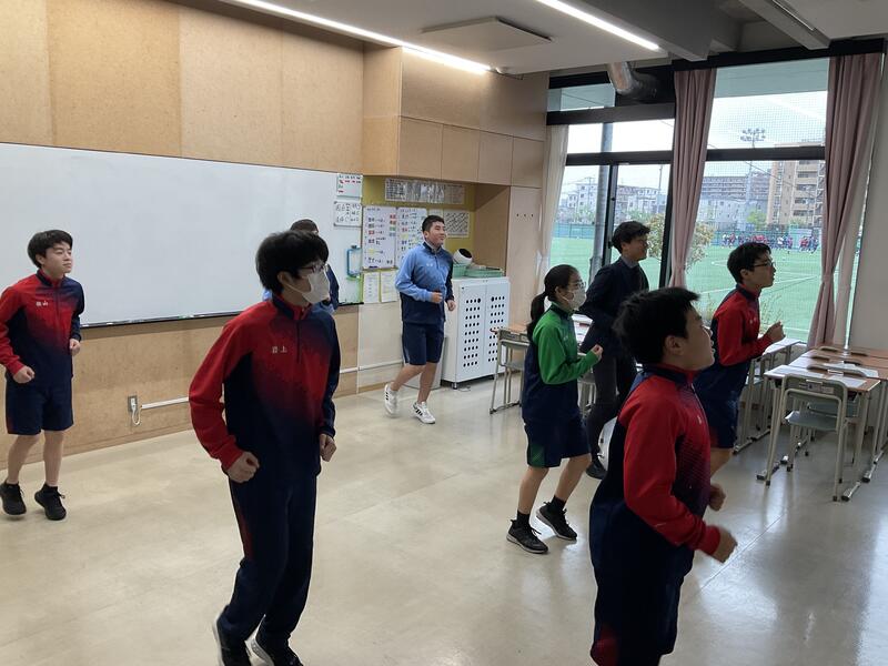 学校の50mプールを使うことができますが、この時期は水を入れていないため室内練習をやりました。