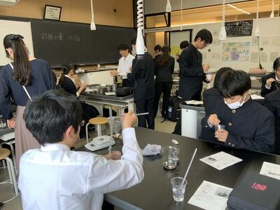 中学二年生になると、附属中では、このような実験をたくさん行います。