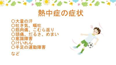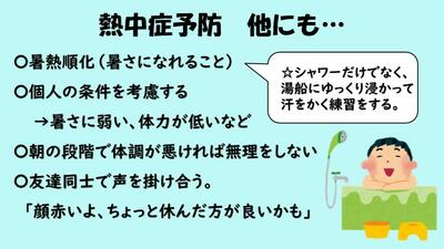 ☆防具を付けるスポーツは、着用しているものを適宜緩めるなどして熱を逃がす