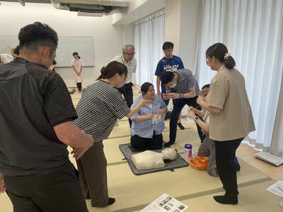今回初めて救命講習を受ける人が半数以上の中、真剣に一生懸命受講している様子が素晴らしかったです。今日の帰り道に救命が必要な人(傷病者)に出会うことになったとしても、皆さんなら、すぐに学んだことを活かしてくれると思います。意識の確認、呼吸の確認、心肺蘇生、AEDを使用する等、周りに助けて実践できるようになって欲しいです。今回は90分間の「救命入門コース」を受講してくれましたが、消防局本部では夏休みの期間中に「ジュニアドクター」という、時間をしっかりかけて、深く学ぶコースを受講することができます。定期的に今日学んだことを思い返すことや、再度学ぶことは大切です。ぜひ申し込んで、積極的に学びに来てほしいと思います。