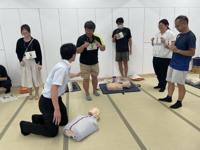 ・僕は最初、心肺蘇生は簡単にできるものだと思っていました。しかし、この体験を通して、1つの命を救うためには多くの人の協力が必要で、とても大変なことなのだと分かりました。僕もAEDの設置場所をもう一度確認し、命を大切にして生活していきたいと思いました。