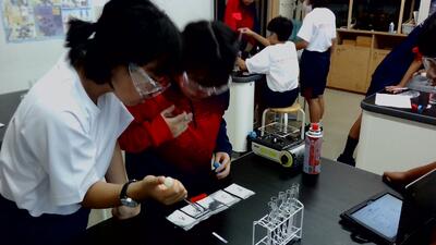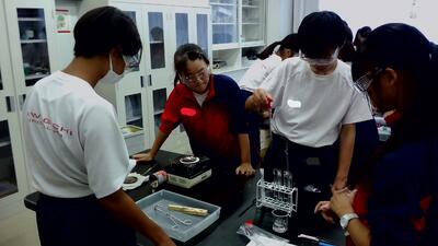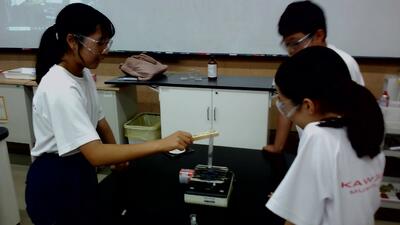 水に溶かしてみたり、加熱してみたり…班ごとにいろいろな方法を組み合わせて特定しています。