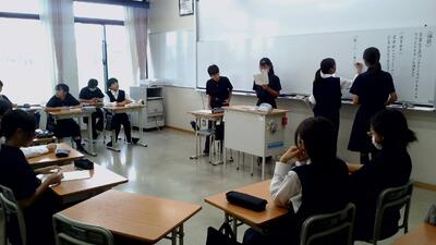 3人の振り返りの発表を大きくうなずいて聞いている生徒も多く、全員がしっかり本行事の目的を果たせたことがうかがえました。