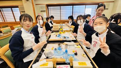 最初に、和菓子の練り切り作りと抹茶の点て方を教えていただきました。