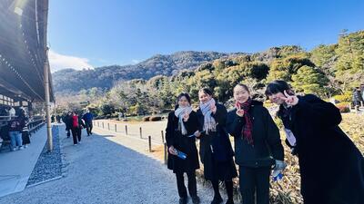 次に、嵐山方面へ。渡月橋でクラス写真を撮った後は判別に散策をしました。昼食をとり、帰りの新幹線に向けて京都駅へ向かいます。