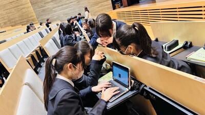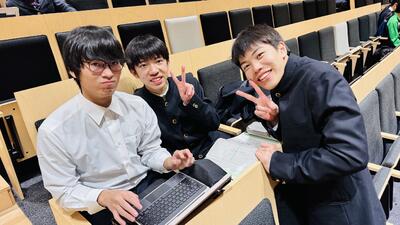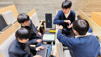 本日の探究学習は、附属中の卒業生である1,2期生の高校生との交流会でした。現在進めている探究学習について、高校生の先輩たちからたくさんアドバイスをもらいながら作業を進めました。