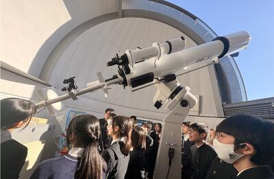 まずはプラネタリウムから。通常プログラムと、特別授業を受けることができました。プラネタリウムで受ける授業は新鮮で生徒からは大変好評でした。