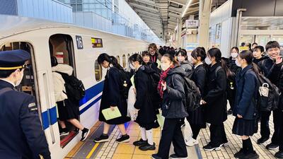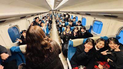 新幹線での移動に慣れない生徒もいましたが、元気な生徒は非常に元気です。