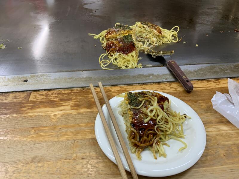広島と言ったら、お好み焼き!ということで、昼食は駅近くでお好み焼きをいただきました。