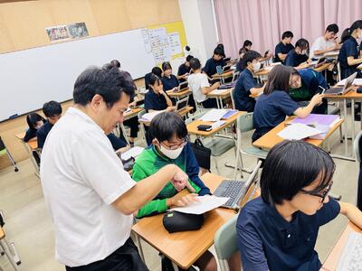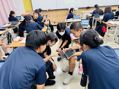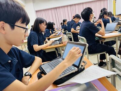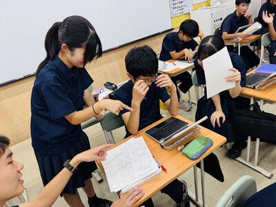 前回は、夏休み中に作成した『探究活動レポート』をもとに発表を行いました。今日の授業では発表で班のメンバーから出た質問や意見を、自身のレポートに組み込んだりブラッシュアップしたりする作業が中心となりました。さらに、今後行う論文作成の流れについても説明があり、これまでやってきたことと、今後の活動がつながる授業でもありました。