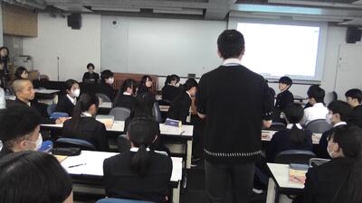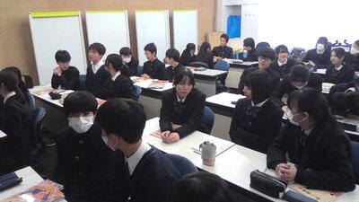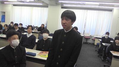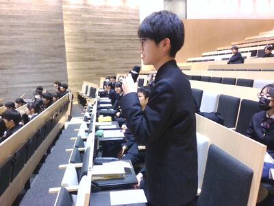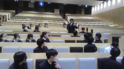 また、附属中を卒業した1期生の一貫生の先輩方は、現在高校2年生であり、模試や部活動、探究等で頑張っている姿を高校2年生の学年主任の先生から教えていただきました。数年後に自分たちがどのようになっていくのかを具体的イメージすることができました。