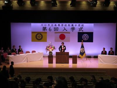 また、3名のご来賓皆様にもご臨席を賜り、川口市議会議長 宇田川様からは、祝辞もいただきました。本校の恵まれた施設や質の高い教育の展開、探究的な学びの充実について触れていただいたとともに、入学生に温かな激励のお言葉を伝えてくださいました。