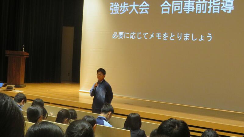明日の強歩大会にむけて、全学年で前日指導を行いました。