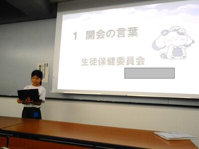事前に保健委員の生徒が講師にインタビューを行い、親しみやすいエピソードを交えながら紹介しました。保健委員からは「話しやすく相談しやすい存在」という声がありました。保健委員が講師紹介をしたことで、あたたかな雰囲気で会をスタートすることができました。