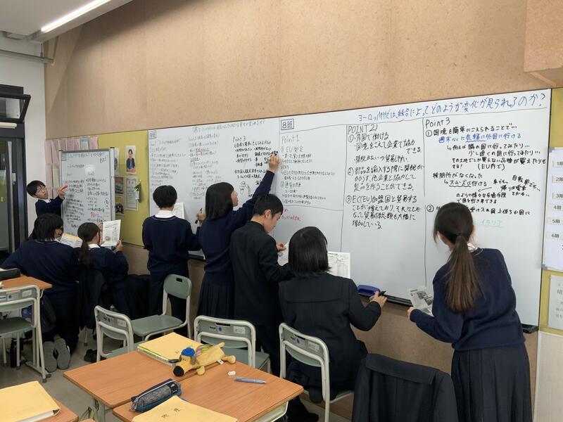 この時間は、ヨーロッパ州では、統合によってどのような変化が見られるのかを、様々な資料を読み取って表現していました。