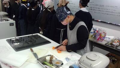 02/03(火)【1年生】調理実習 投稿日時 : 02/03 10:04 附属中学校 いい匂いに誘われて調理室に行くと1-1が調理実習をしていました。 サバトマスープに始まり、ジンジャークッキー、前回のキッシュといろいろな料理に挑戦してきましたが、今回は和食(豚汁とイワシの蒲焼)のようです。 スコラ手帳を見ると、「以前調理実習で作ったキッシュを家でも作りました!」という人もいました。学校で学んだことをお家でも生かせるなんて、なんて素敵なことでしょう。 ぜひ、機会があればお家の人と一緒に調理実習で作ったものを作ってみてくださいね! Tweet - -
