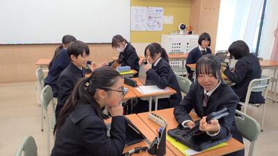 02/17(火)【1年生】総合~中間発表に向けて~ 投稿日時 : 02/18 10:38 附属中学校 現在、1年生の総合的な学習の時間では1年間の総まとめとして、川口の課題をSDGsの観点から捉え、解決策を提案するという探究学習を行っています。 来週はその中間発表として2年生と研究成果を交流します。 どの生徒も集中して1年間かけて探究した内容をまとめることができていました。3年生になると自分の興味のある内容について探究し、レポートにまとめます。今はその土台作りです。ただ活動するのではなく、相手意識・目的意識をもって探究を行えればいいですね! Tweet - -