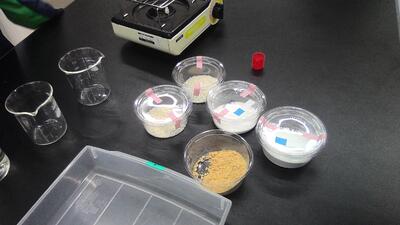 オーソドックスに土、乳酸菌飲料を数種類、パンや味噌、納豆を材料に、糖分に砂糖やお菓子を利用している班もありました。