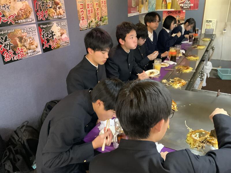01/20(火)【3年生】研修旅行② 投稿日時 : 01/20 13:00 附属中学校 新幹線での移動に慣れない生徒もいましたが、元気な生徒は非常に元気です。 広島駅に到着しました。 広島と言ったら、お好み焼き!ということで、昼食は駅近くでお好み焼きをいただきました。 名物に舌鼓をうっています。 とても美味しかったです!ありがとうございました! Tweet - -