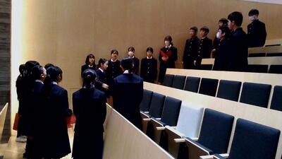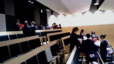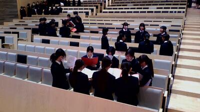 来週に音楽祭。本日、1年生は本番を想定した練習会を行い、当日の流れや会場での動きを確認しました。