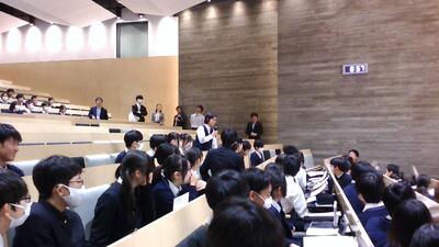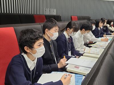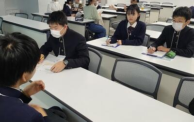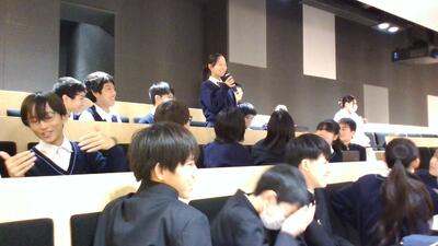 午後は、午前中に聞いた第3段階の研究発表者(3名)との交流会から始まりました。グループの司会は、本校川口教室の3名 でした。相手は高校生かつ初めましての方々ばかりでしたが、大変落ち着いた円滑な進行にとても感心しました。また、参考文献の探し方、検証の仕方の開発とその妥当性、学校生活と研究の両立、そもそもその研究を進める意義等、本校川口教室の8名は積極的に質問をしていました。