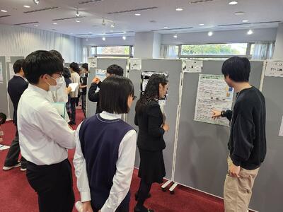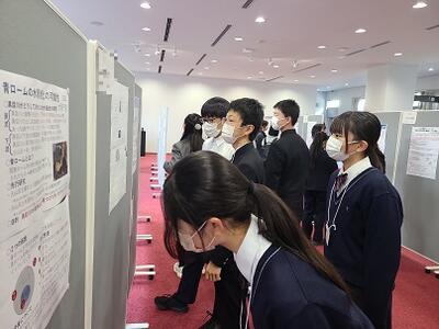 その後は、第2段階のポスター発表を参観し、最後に、第1段階~第3段階意見交換会に参加しました。こちらでも様々な研究の視点やアプローチを知ることができ、自分たちの研究に生かせる大変有意義な時間となりました。