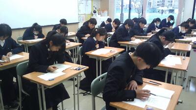 本日は土曜日ですが、1,2年生は希望者、3年生は全員が第4回目も実力テストとして、校内でZ会の模試を受検しています。
