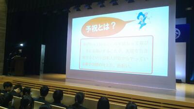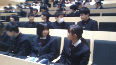 本日の6限の時間は大ホールで中学2年、3年合同のフェーズ座談会が行われました。