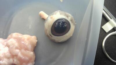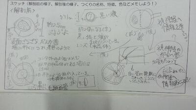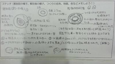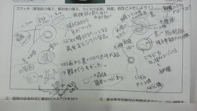・1年生の時にニワトリの頭を解剖したときに目をいじっていたら黒い液や白い球が出てきたとき、先生に「それは網膜(と水晶体)だよ」と教えてもらったのを思い出しました!このことから鳥類も哺乳類もつくりは似ていることが分かりました。ほかの生物も解剖してみたいです!!