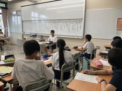 音楽祭に向けて音楽の授業を通して歌の練習を少しずつ行っているところですが、クラスとして具体的に何を目標にするのか、この行事を通して自分たちがどういう集団(クラス)になりたいかといった視点を大切にした話し合いができていました。