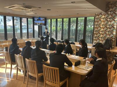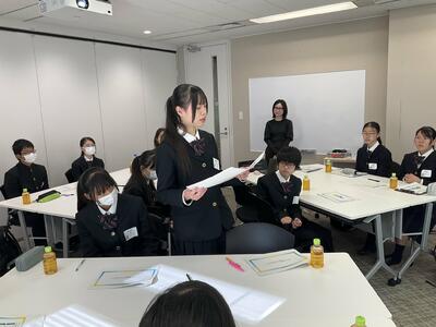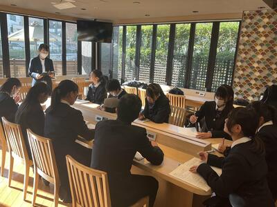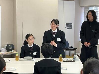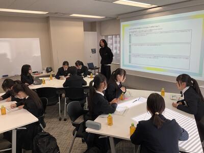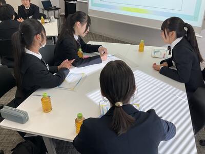 新しいサービスを生み出すことについて説明していただきました。旅行サブスクというサービスを社内で企業することについて、アイデア誕生の背景から売り方まで教えていただきました。グループワークでは「どのような人が旅行サブスクを利用するのか?」を考えました。生徒の考えに社員の方も感心しておりました。このような活動から”誰のために”という視点の重要性に気づきました。