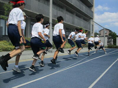 いよいよ体育祭練習が始まりました。今日の練習は、団対抗「台風の目」と、学級対抗「大縄跳び」です。