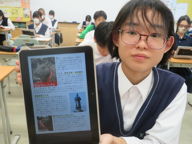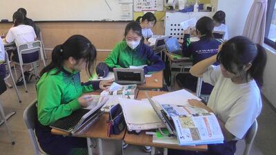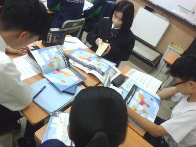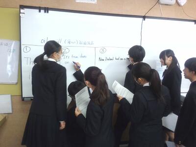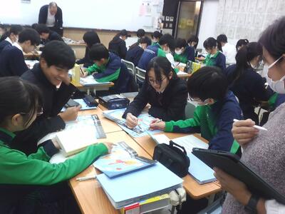 GIのテキストは、中学生にとっては難しい単語や文法も多くあります。しかし、班で協力して読み取った内容が、地理や総合的な学習の時間など、他教科で学んだ知識とつながる瞬間があります。