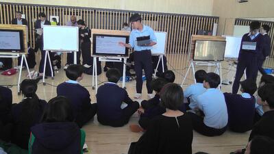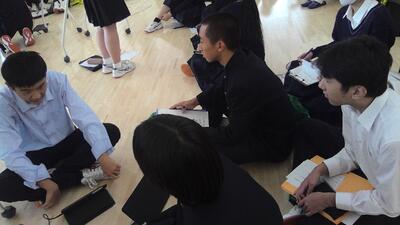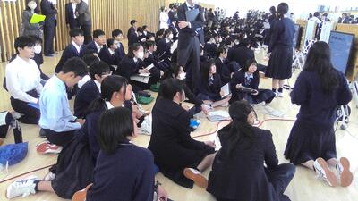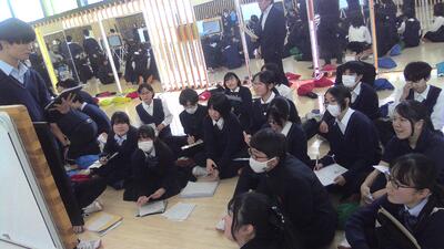 また、附属中を卒業した1期生の一貫生の先輩方は、現在高校2年生であり、模試や部活動、探究等で頑張っている姿を高校2年生の学年主任の先生から教えていただきました。数年後に自分たちがどのようになっていくのかを具体的イメージすることができました。