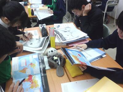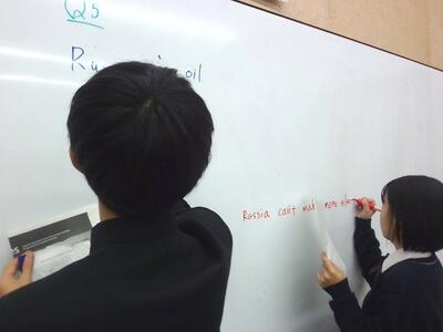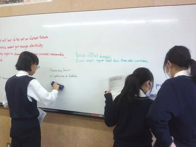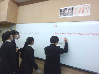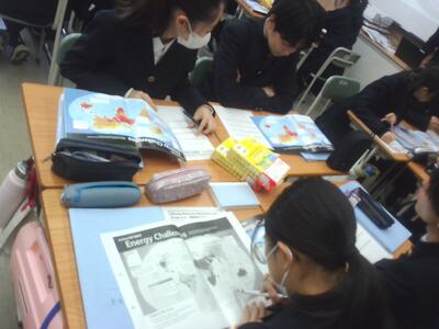 今日は、諸外国が直面しているエネルギー問題に関する英文と、世界地図を読み解く活動を行いました。