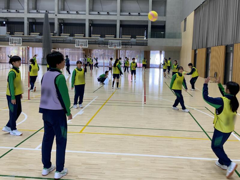 音楽祭のリハーサルの次の時間、体育のバレーボールの授業を行いました。