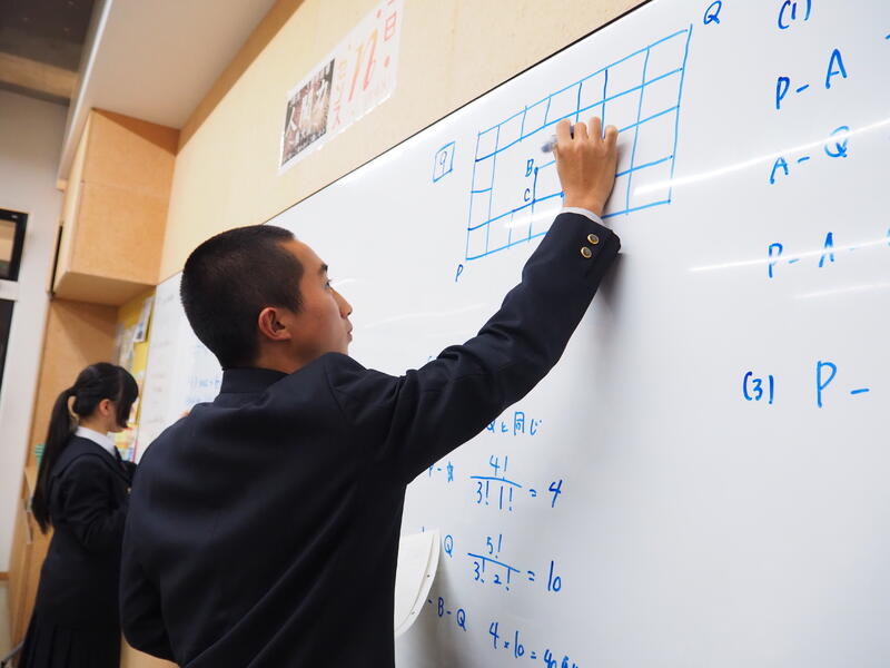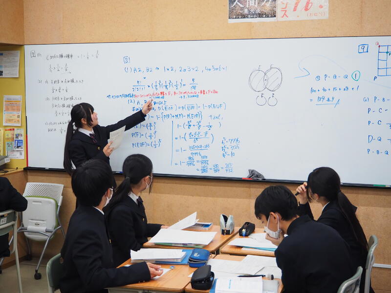本校の数学は先取り学習をしているため、3年生は本来は高校生で習う数学Ⅰと数学Aを学んでいます。