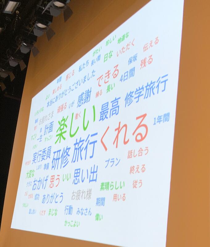 3年生が入力した研修旅行の振り返りをフィードバックする時間を設けました。