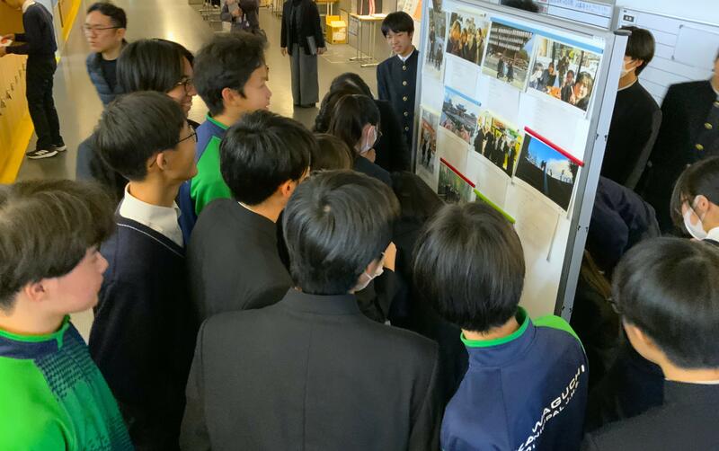 今日はその研究の成果、論文の内容をパワーポイントにまとめて1人7分の発表の場です。市役所や市内の中学校の先生、大学の講師の方をお招きして、研究内容に質問やご意見をいただきました。来年以降も高校で探究は続きます。1年間の終わりを次の1年の始まりに繋げるべく、いただいた意見に真剣に向き合うことができました。