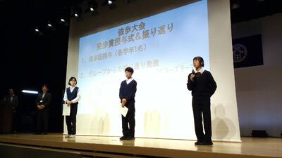 今日の1時間目は全校生が大ホールにて、完歩賞の授与をはじめ、
