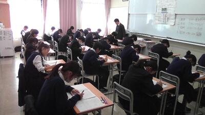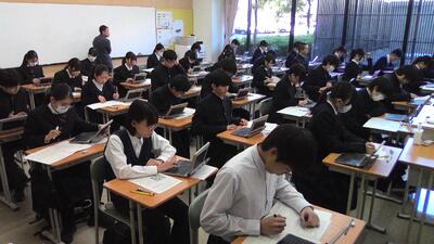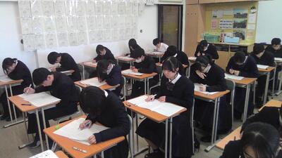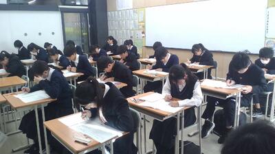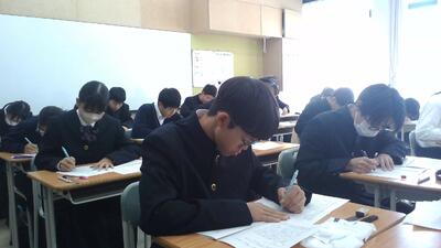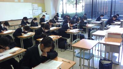 本日は土曜日ですが、1,2年生は希望者、3年生は全員が第4回目も実力テストとして、校内でZ会の模試を受検しています。